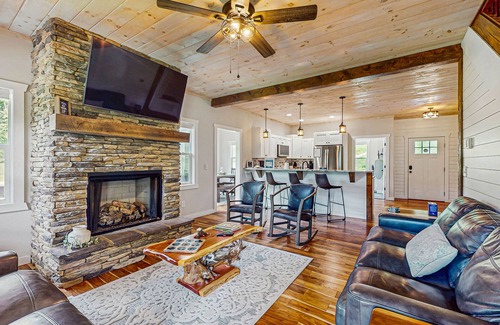 Enjoy the outdoors at this newly built home on over an acre, with large grassy yard with creek access. As dusk falls enjoy the firepit down by the creek as you roast some marshmallows or catch some fireflies. The upper deck has a wood-burning fireplace to cozy up in the evenings while you relax on the comfy furniture and watch TV. Play a game of cards on the lower deck table or enjoy an al fresco meal with the cool breeze overlooking the meadow. Come ready for adventure - historic downtown Blue Ridge is less than 13 miles away with shopping, restaurants, and the Blue Ridge Scenic Railway. Mountain biking, hiking, and tubing are all available on Aska Road, less than 20 miles from the cabin. Rent a pontoon boat, kayak, paddleboard, or a canoe and explore Lake Blue Ridge, only 11 miles away. Only 13 miles from the cabin is Blairsville, where you are able to explore the many farm-to-table restaurants and shopping.