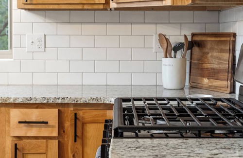 Cook up family meals in the fully-stocked kitchen with modern appliances and enjoy them together at the large farmhouse table.