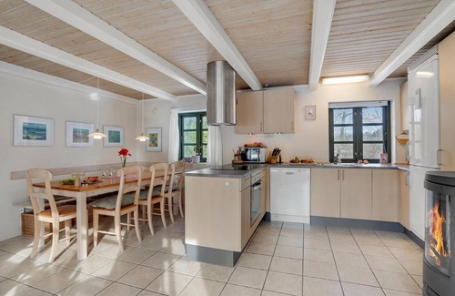In the bright rooms you can really make yourself comfortable with your loved ones. Enjoy time together at meals at the long dining table and relax extensively on the comfortable sofas. After an active day in nature you can fire up the stove, enjoy the cozy warmth while the flames crackle and chat for a long time.