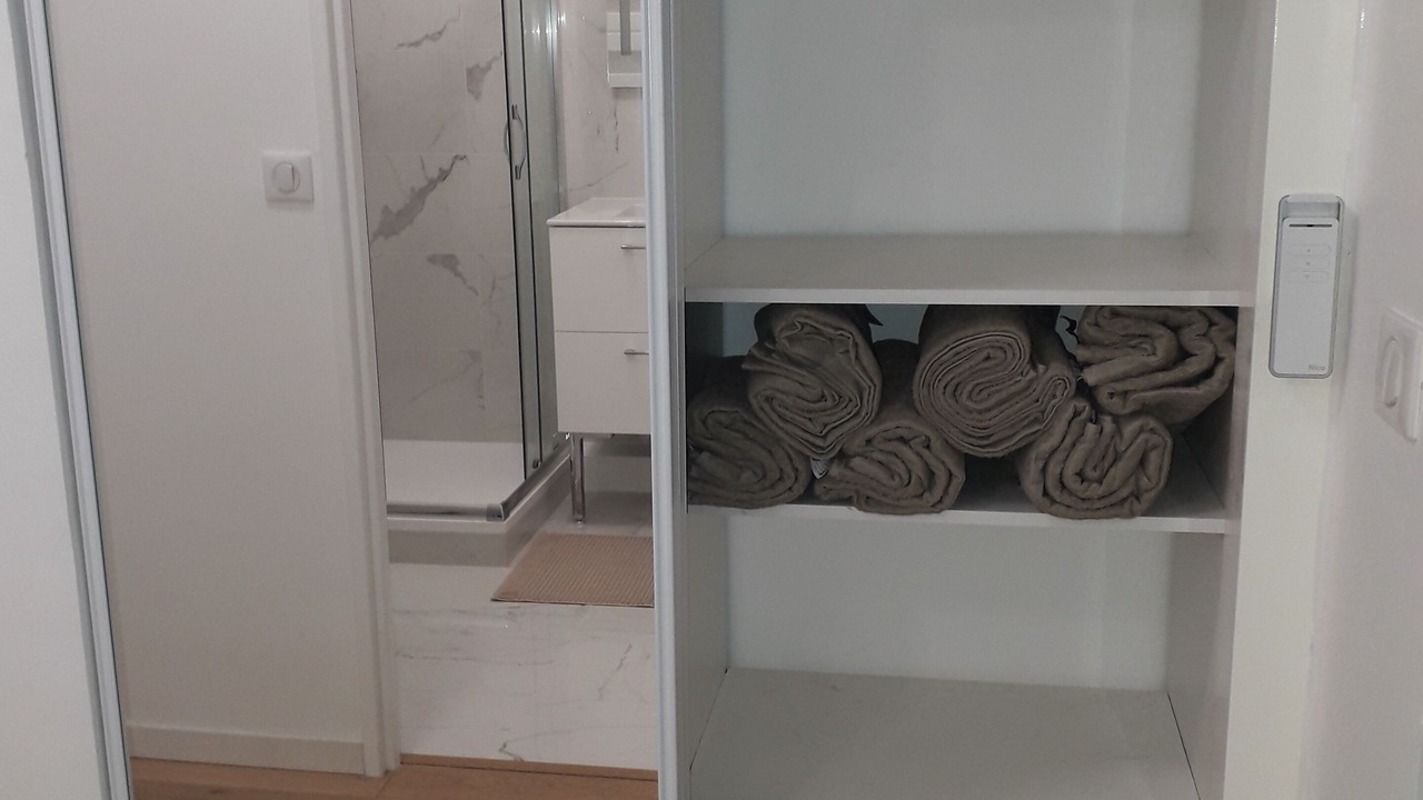 In a green residence, 20 minutes from Paris by transport very close to the RER station, newly renovated apartment offering modern and functional services, upper floor apartment with elevator with a view of greenery, fully equipped apartment with oak parquet floors, bathroom modern bathroom. Alone, as a couple, or three, you will have a Queen size bed and a single high bed. Local shops and attractive city center!