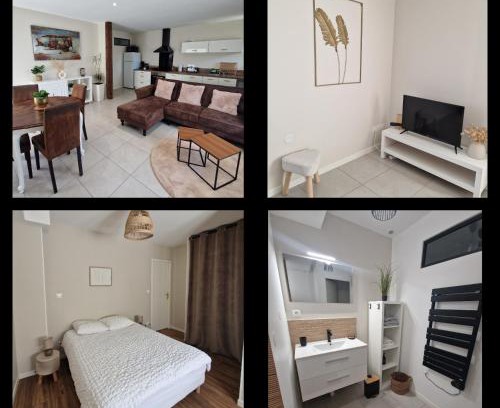Featuring a garden, Appartement avec extérieur pour 3 à 4 personnes provides accommodations in Velanne. With free private parking, the property is 21 miles from SavoiExpo and 23 miles from Fountain of Elephants. Outdoor seating is also available at the apartment. Providing a terrace and mountain views, the apartment includes 1 bedroom, a living room, flat-screen TV, an equipped kitchen, and 1 bathroom with a shower. Towels and bed linen are provided in the apartment. For added privacy, the accommodation has a private entrance and soundproofing. WTC Grenoble is 29 miles from Appartement avec extérieur pour 3 à 4 personnes, while Bourget Lake is 29 miles away. Chambéry-Savoie Airport is 22 miles from the property.