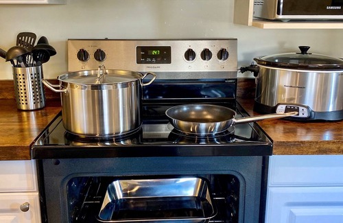 GeneralElectric kettle, Cable TV service, Number of bedrooms - 2, Dishwasher, Spices, Designer toiletries, Stovetop, Bathtub only, Video-game console, Balcony or patio, Kitchen, No rollaway/extra beds, Iron/ironing board, Television, Toaster, Bed count minimum 5, Bed sheets provided, Hair dryer, Free WiFi, Coffee/tea maker, Children's books, Microwave, Dryer, Laptop-friendly workspace, Towels provided, Air conditioning, Number of bathrooms - 1, Cookware, dishware, and utensils, Washing machine, Private bathroom, Heating, No cribs (infant beds), Bed count maximum 5, Oven, Refrigerator |