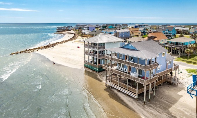Amazing panoramic and unobstructed views of the ocean, San Luis Pass, and beautiful bridge from this island home will blow you away - it's a WOW! This IS the quintessential direct sparkling waterfront vacation you've been waiting for!