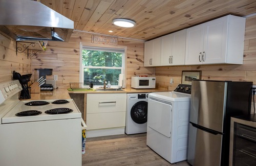 The cabin comfortably sleeps up to 6 guests, making it ideal for families with children or two couples. Inside, you'll find a warm, character-filled interior with updated essentials like air conditioning, heating, a washer, and dryer.