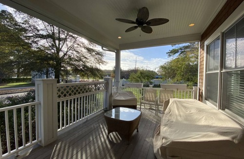 The home is in a peaceful setting right on the edge of the very walkable historic Cape Charles. As one of the few homes in Bay Creek's "Marina East" neighborhood, the home is surrounded by lots of green space and water. All of this behind the gates of Bay Creek on a low traffic street, meaning peace and solitude while sitting on the sizable front porch with your morning coffee or evening cocktail.