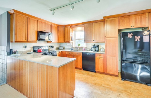 Reconnect with nature and loved ones and escape to this scenic vacation rental in Steuben, Maine! After exploring the Maine Coastal Islands National Wildlife Refuge, book an Acadia Puffin Cruise for whale watching, or simply unwind on the quiet deck. Boasting a well-stocked kitchen, a dedicated workspace, and a spacious interior, this inviting 2-bedroom, 2-bathroom home has everything you need for a seamless stay.