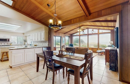 This oceanfront Mendocino vacation rental home is the perfect setting for kicking back with friends and family, enjoying a glass of wine on the patio, and watching the waves roll in. This home is set up on a bluff, which allows for a fantastic view. Set back from the edge of the ocean so one can observe varied wildlife grazing with the Pacific sunset as a backdrop. You will love every minute spent at Sunset Point! Centrally located, you'll be a short drive to either Fort Bragg or Mendocino Village. Take a quick walk to the Mendocino Coast Botanical Gardens for a floral experience.