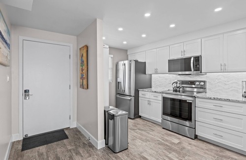This condo is complete in every way: new fully equipped modern kitchen, two bedrooms, two full baths, LG washer/dryer, WiFi, cable flat screen TV in every room and more.