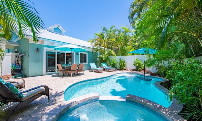 Beautiful Bungalow with Private Pool and Spa, just Steps to the Beach! | House in Holmes Beach