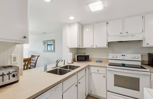 The kitchen is fully stocked with everything that you need to prepare a home cooked meal, all while enjoying the amazing views. The dining area is just off the kitchen and provides seating for four.