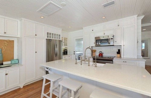 As seen in Coastal Living Magazine, this is a quintessential, beachfront home on desirable Bean Point with with direct access to Bean Point Beach. You will enjoy panoramic views of the Gulf of Mexico from your two balconies. The house has a charming, cottage-style decor with an open floor plan. The living level has a full size, modern kitchen, a dining area, a half bath and a great room that opens up to a generous balcony for enjoying the breath-taking sunsets over the Gulf. Halcyon, which means calm, peaceful, and tranquil, is exactly how you will feel during your stay at my house.