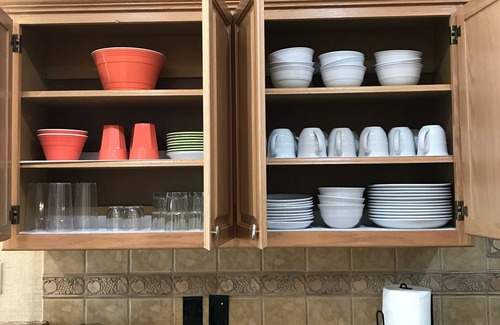 Amenities - 2 coffee makers (12-cup drip - coffee furnished) and Keurig (bring your own K-Cups), iron & ironing board, 2-hair blow dryers. The kitchen has everything needed for cooking. We supply a nice starter kit, which includes toilet paper, paper towels, napkins, Kleenex, shampoo, conditioner, body wash, towels, sheets, blankets, some spices, tea,. Ice maker in Refrig.