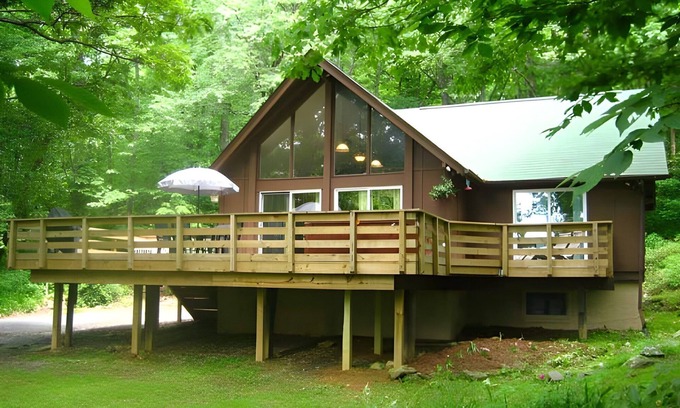 Surrounded by the Blue Ridge Mountains in the beautiful Shenandoah Valley this cabin offers three bedrooms, one master bedroom with a King-size bed and, one bedroom with a Queen-size bed and two bedroom has a Full-size bed plus, two full bathrooms in the home. There is a fully equipped modern kitchen, a big screen TV, and turntable with classic vinyl records and on the deck are a grill for cookouts & a wonderful 6-person hot tub... Plus, dogs are welcome!