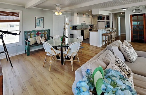 Just steps from the sand, Bermuda Blue invites you to relax on the expansive wrap-around deck where you can bask in the sun, enjoy ocean breezes, and gaze out over the sparkling Gulf of Mexico. After a day of beachcombing or swimming, rinse off in the outdoor shower before gathering around the oversized dining table for a sunset dinner with the waves as your backdrop. With ample outdoor space and easy beach access, this home is all about embracing coastal living.