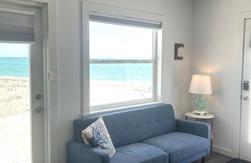 The 600 square foot updated and charming cottage RIGHT ON THE BEACH is where you can sunbathe, swim, snorkel, collect shells and sharks' teeth, and fish with a spectacular 180 degree exposure to the Gulf of America.