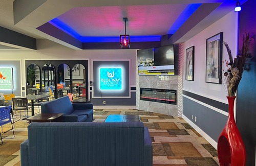 Blue Way Inn & Suites Eagan, located at 1950 Building, 2 Rahncliff Ct, Eagan, MN 55122, is a charming property situated in a peaceful and welcoming neighborhood. The hotel offers spacious rooms with modern amenities and includes a complimentary breakfast. Guests can enjoy free Wi-Fi throughout their stay. Outdoor features include furniture, a picnic area, and BBQ facilities. The property also has a business center with computers, printers, and internet access, as well as free parking, non-smoking rooms, private entrances, wake-up service, and wheelchair accessibility with all units on the ground floor. Daily housekeeping is provided to ensure a comfortable stay.