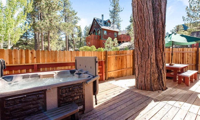 Escape to our rustic Big Bear cabin in desirable Boulder Bay! This cozy 500+ sq ft retreat comfortably fits 3 guests. Features a private hot tub, wood-burning fireplace, and a fully equipped kitchen. Just a short walk to the lake, hiking trails, and Boulder Bay Park. Perfect for a memorable mountain getaway.