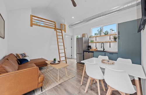 Grand Cabin (5 units): Well appointed tiny home cabin with two king bedrooms, vaulted ceilings, luxurious dual vanity full bathroom, central heating/cooling, additional loft space with two twin beds, modern kitchen, cozy living room, and private indoor and outdoor seating/dining areas. The perfect ingredients for a relaxing weekend with friends and family!