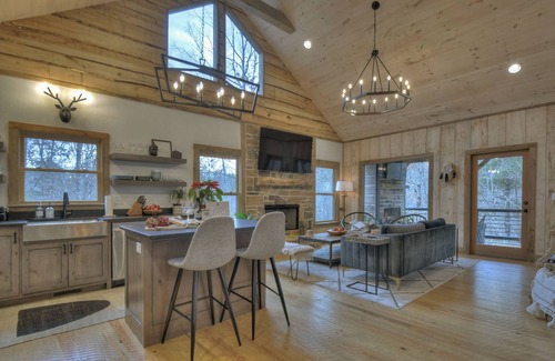 Find your Mountain ZEN at Buddha Blue Ridge Dreamcatcher. We call this the “Honeymoon House” since it is perfect for a couple or 2 couples looking for a quaint, unique, luxury Mountain Cabin less than 2 miles to downtown Blue Ridge. This cabin is BRAND NEW with Custom finishes and professional decor. Step into a whimsical space, ideal for romance and relaxation. This cabin is also for creative people looking for a sanctum to be inspired and creative. Two bedrooms and two full bath, each located on their own floor to ensure privacy if sharing the cabin with friends. Luxury linens, bathrobes and towels as well as toiletry items provided. Smart 70” tvs in both bedrooms. As well as living room. Game room and outdoor living have 60 “ smart TVs. Hot tub on private deck for ultimate relaxation. Hidden in the trees, you will feel like you are far away from the world, but only a short drive into downtown Blue ridge for dinners and drinks and shopping. Hi speed WiFi throughout so you can work from home. Fully stocked kitchen, coffee maker, grinder and French press provided for ultimate morning coffee on the expansive deck. Wood burning fireplace in outdoor living room and dining area. Fire pit nestled in the trees for evenings under the stars. Outdoor large dining table, Indoor gas fireplaces in upstairs living room and downstairs game room. Basement room with game table, Large screen TV and record player along side well appointed Bar for entertaining. TV’s in each bedroom and both living areas as well as outdoor living area so you can relax and curl up outside with a blanket to watch your favorite movie or the game. Paper towels, toilet paper, shampoo, conditoner, dishwasher pods, laundry detergent, trash bags all provided to ensure you can just pack your toothbrush and settle in and enjoy. Buddha Blue Ridge is a Company that has 4 distinctive properties for all types of guest stays. Buddha Blue Ride Dreamcatcher is ideal for a couple, or two couples to enjoy the mountains and each other. Catering to adults, but children are welcome. 4 guests maximum.