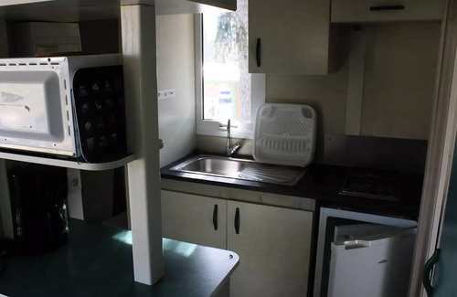 Equipment: The chalet includes a kitchen with a fridge, hob, microwave and coffee maker. The equipment also includes a garden furniture.