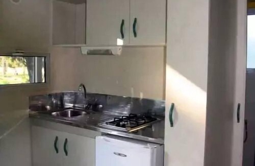 Equipment: The chalet includes a kitchen with a fridge, hob, microwave and coffee maker. The equipment also includes a garden furniture.