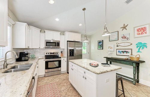Welcome to Caribbean Surf, a bright and inviting 3-bedroom, 2-bath bungalow just a short stroll from the sugar-white sands of Holmes Beach. With its cozy coastal charm, private heated pool, and family-friendly amenities, this home is the perfect place to relax, unwind, and enjoy everything Anna Maria Island has to offer.