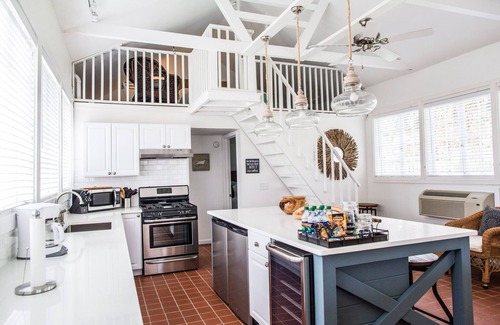 The cottage has an open floor plan with the kitchen and living room together as one large space. The living room has plenty of seating with two couches and a cozy chaise lounge too. The completely renovated kitchen features quartz countertops, a huge island with seating, all new appliances and everything you will need to prepare, cook and enjoy meals while here at the beach. The cottage has a large flat screen TV for you to enjoy a wide variety of Comcast cable offerings. Both of the bedrooms have brand new queen mattresses and linens. Cavalier Cottage also has a twin size cot, which can be set up too. The completely remodeled bathroom features a tub with shower, all new towels and a large vanity with storage.
