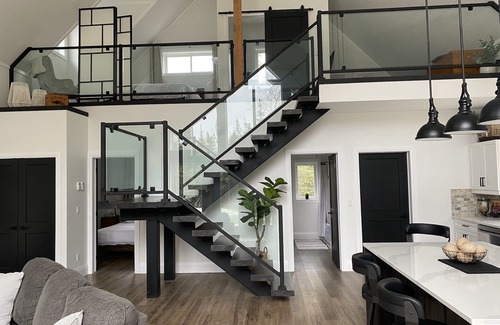 This all-season custom-built home features two bedrooms, two bathrooms, a laundry room, loft reading nook and a large open concept kitchen and living room with cathedral ceiling.