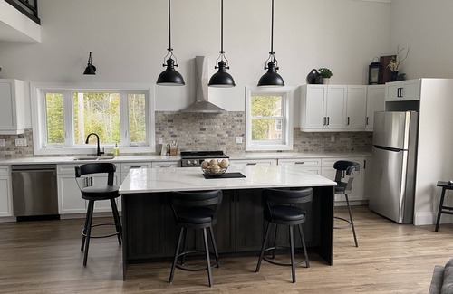 A short walk from the property will give you access to numerous trails and waterfront vistas, including the increasingly famous Sunset Park. A deck surrounds the home on three sides to enjoy a meal cooked on the available outdoor grill or to stargaze into Tobermory's notoriously dark skies. Too cold outside? Get your favourite book, a hot drink and enjoy a seat on our pull-out sofa in front of the propane fireplace.