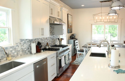 Stunning newly remodeled 4 bedroom, 3 and 1/2 bathroom home in the historic district that sleeps 12 comfortably with free parking on premise. The home is designed for entertainment and fun or just relaxing and has something for everyone. The cooks will delight in preparing meals in the well-appointed gourmet kitchen that offers all stainless-steel appliances including a 6 burner commercial gas stove with griddle. It has an oversized island, two large sinks, coffee bar and is open to the living/dining with seating for 12. The home has numerous large smart flat screen televisions with cable and free Wi-Fi throughout, as well as USB compatible plugs alleviating the need for charging adapters. For those that are young at heart, there is a game room that boasts an air hockey table and Jurassic Park pinball machine. There is also an attached media room with a 75" flat screen TV and comfy reclining sofas for movie night!