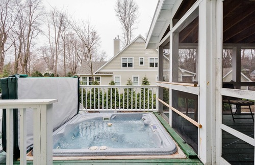 Exquisite private outdoor space abounds, including a large yard, a spacious deck, a screened-in porch, and a hot tub. Enjoy the all-purpose sports court (basketball court surface & hoop)! We are going for a cottage experience, so there are not a lot of TV channels :) If you are a TV person, bring your iPad because we do have internet!