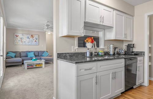 Both units offer fully equipped kitchens, complete with Keurig machines and complimentary coffee, perfect for enjoying your mornings. Bathrooms are stocked with essentials, including toothbrushes, and each unit includes a washer and dryer for added convenience.