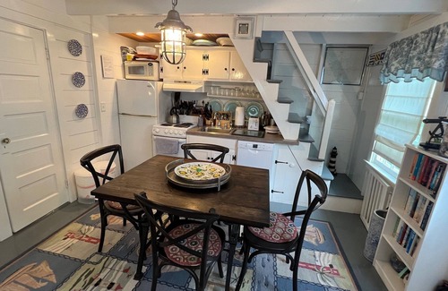 This charming two story classic Nantucket rose covered cottage is located in Brant Point, just a 10 minute walk to the center of town, 3 beaches and ferries. There is no need for a car, though there is a private off-street driveway area in front of the house. This traditional Nantucket cottage has been completely refurbished with new furnishings and decorations, luxury European sheets, bedding, towels, dishes and glassware - and HVAC split system (thermostatic controls) replacing all window units and space heaters. The entire exterior was has been re-shingled with a new roof, rear deck and bluestone patio, and an outdoor shower, all while retaining the cottage's historic Nantucket charm. The flowers and hydrangeas are in full bloom from May to September, so enjoy a backyard barbecue with Weber gas grill, the teak backyard table and chairs and new adirondack chairs This two-bedroom, one bath, two story home comfortably sleeps 4. The bathroom is new May 2025 with new shower and new tile floor. The master bedroom has a queen bed - the second bedroom has two twin beds - all beds have new mattresses and boxsprings. The living room has a new 42" Smart flat screen TV. The fully equipped kitchen with all appliances adjoins the dining area . Both bedrooms have 23" Smart flat screen TVs. Laundry room contains a large capacity washer/dryer. Secured Xfinity wireless internet and digital cable TV.