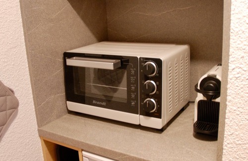 New kitchenette equipped with a dishwasher, fridge, ceramic hob, microwave oven, oven, toaster, crockery, Nespresso machine, raclette and fondue.