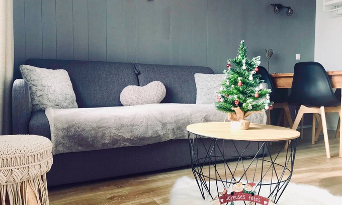 Charming COZY cabin studio of 25 m2 for 5 people maximum 50 m from the slopes (ski and mountain bike packages). Classified 3 stars (Label 3 keys Clévacances). Located on the highest resort of Chamrousse Roche Béranger 1750m with a 6-seater chairlift at 50 m to take you to the entire ski area, 8 minutes walk from the shopping center and 4 minutes by free shuttle (yellow line) that you can take the foot of the residence Le Claret.