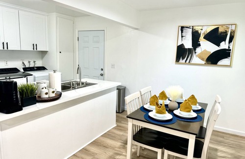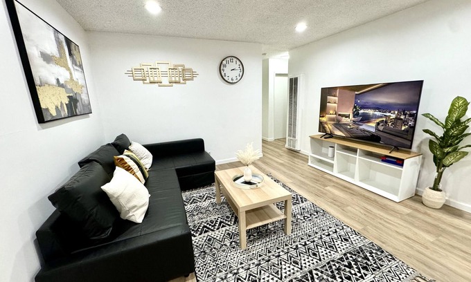 This memorable house is the perfect home base for your trip to Fullerton. With 2 welcoming bedrooms featuring 2 queen beds, this enjoyable property offers a gorgeous living room with an additional sofa bed for extra comfort. Start your day in the beautiful bathroom equipped with a hair dryer, and take advantage of the iron, washing machine, WiFi, AC, and heating amenities provided. Whether you're exploring the city or relaxing at the property, guests will have everything they need for an enjoyable stay. Enjoy your time in Fullerton at our welcoming house.