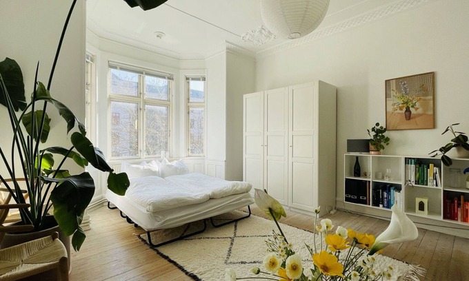 A lovely, light and large apartment in the very popular neighborhood of Østerbro in Copenhagen, a peaceful area close to downtown. Good transportation with bus, Metro and train