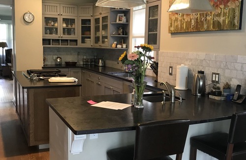 For the first time, we look forward to sharing our remodeled craftsman bungalow on the quietest and most coveted street of Mapleton Hill. Large windows and back deck overlook Flagstaff Mountain and Green Mountain and the Flatirons. Walk to downtown and hiking trails in minutes. Open floor plan with classic front porch. Surrounded by some of Boulder's grandest historic homes, this 4000-square foot house is comfortable and well located to enjoy quintessential Boulder! The kitchen, living room, and large open eating and TV room share the main floor with two bedrooms and a bathroom. The king master suite on the second level includes a five piece bathroom along with a south facing deck with french doors opening to mountain views. The basement has an office, game room, laundry, and two bedrooms along with a full bath. The back deck and side yard offer excellent outdoor areas to enjoy eating outside or relaxing in the shadow of the Flatirons. High ceilings and multiple windows keep the house light and bright while maintaining its historic character, which was awarded a Historic Boulder renovation award. Our house is registered with the City of Boulder short term rental program under license RHLOO992038. The license allows multiple related and family members and/or up to 3 unrelated people. Ask us about our Breckenridge house and the possibility of using both properties during your stay!
