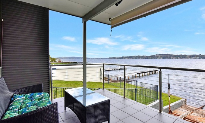Wake to beautiful, uninterrupted lake views from bedrooms and living areas. Single level with waterfront alfresco areas, dual living zones, three bedrooms and two bathrooms, it’s perfectly laid out for family living and entertaining and delivers a premium holiday lifestyle.