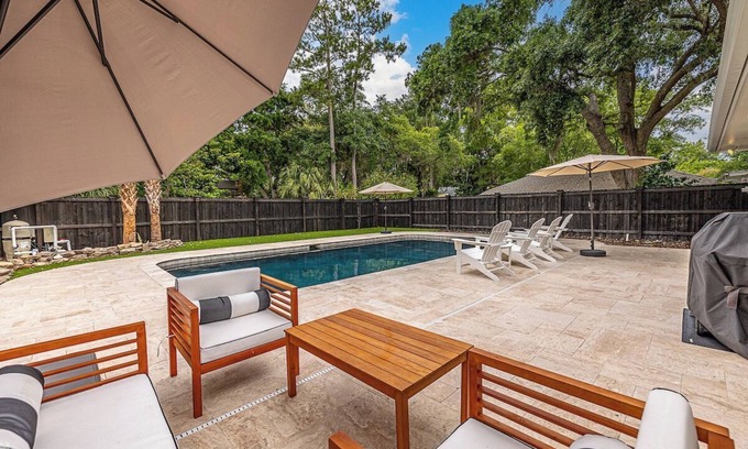 Best-rates for the Saint Simons Heights house starts from $449 per night with includes Pool, TV, Private Pool, Security/Safety, Fireplace/Heating, Air Conditioner, Pet Friendly, Wellness Facilities, Child Friendly, Internet, Kitchen, Laundry with all other facilities. matches every traveler with their perfect accommodation, whether you are traveling with a group, friends, family, or pets.