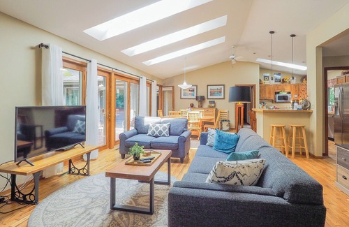 Entertaining options abound in a smart cook's kitchen with center island , living room with wood burning stone fireplace, perfect for curling up with your favorite book or movie. Or enjoy sitting around the firepit at night toasting s'mores.