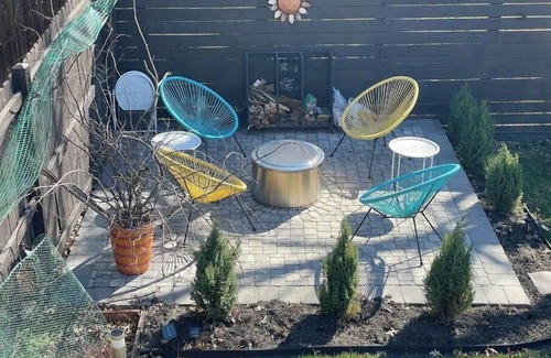 The space leads to the fully fenced backyard. There is a seating area and a fire pit. If you bring your pets, they are welcome to relax back there. We keep ours confined to the upstairs.