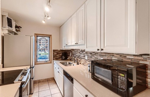 Enjoy a true ski-in/ski-out condo in Copper Mountain Center Village, complete with unobstructed views of the new American Eagle chairlift and gondola from the sunroom. This charming, newly updated condo features all stainless-steel appliances and comfortably accommodates up to 4 guests, with a King bed and Twin sofa sleeper in the bedroom plus two additional Queen sofa sleepers in the living area.