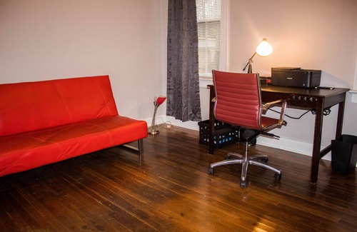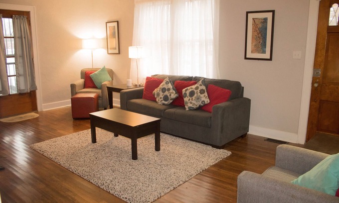 The home boasts a beautiful backyard that has an old barn and partially wooded area and lots of space to explore. The covered patio is a guest favorite, with cozy seating and a great view of the tree lined neighborhood, perfect for sitting and sipping cold tea in the summer or hot chocolate in the winter. This home is guaranteed to be the backdrop of an unforgettable stay in Memphis!