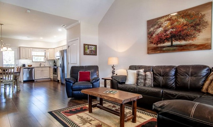 The condo is located in Townsend, a quaint town in the foothills of the Smoky Mountains. Nearby you can float the Little Pigeon River in the summer (River Rats 3.3mi), or visit the local favorite drive-in Burger Master (3.3 mi) for a post-hike treat. There is a nearby market (.7mi), or you can take the pedestrian walking path and bike or walk to the delicious Apple Valley Mountain Village & Café (1.1mi), just 5 minutes down the road. Townsend is the doorway to the beautiful Smoky Mountains where numerous hikes, fun swimming holes, or scenic picnic spots await you. Popular spots include the Sinks (10 mi) for swimming or Cades Cove (17mi) for beautiful scenic views from your car and a picnic area too. Hiking options are numerous, and we suggest doing a little research, but a few well-loved choices include The Chimney tops, Laurel Falls, Abram Falls, and Alum Cave.
