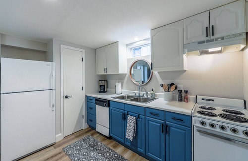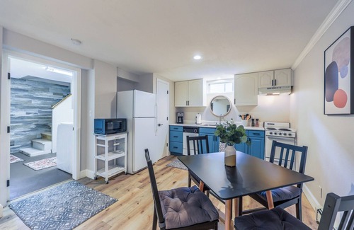 This furnished one-bedroom apartment features an open-concept layout with modern updates. The spacious bedroom has a queen-sized bed and work area with desk. Tastefully furnished with a plush sofa and chaise, the living area features a flat-screen television and console. The kitchen is fully equipped with a full-size fridge, stovetop, oven, and microwave. With plenty of cabinets, counter space, and a pantry, it’s perfect for all your culinary needs. This unit also has access to high-speed internet and a washer-dryer.Outside, a separate entrance leads to a peaceful garden area perfect for relaxing after a long day. Located in the historic Craig and Gould neighborhood, this rental is within walking distance of local shops, parks, and restaurants. Don’t miss out on this perfect blend of comfort and convenience!