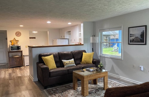 Our charming cottage sleeps up to six people (2 bedrooms, 1 pull out couch) making it perfect for families or friends. A full size kitchen & laundry room are available for your use during your stay. You also have access to the beach and we are located just a mile from the boat launch.