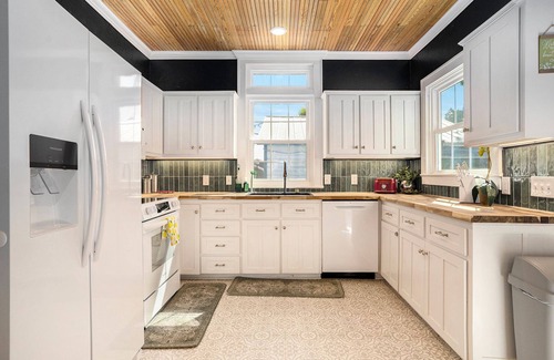 Two private bedrooms and a bonus sunroom offer flexible sleeping arrangements for couples, families, or friend groups.