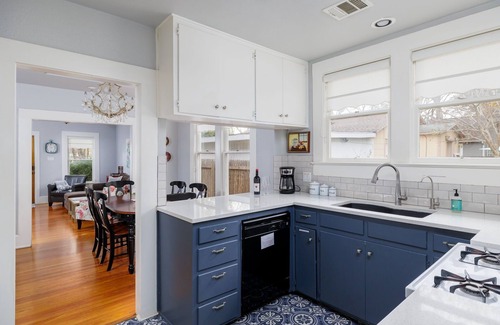 BESITOS HOUSE. We named it Besitos which means 'little kisses' because of the way this charming circa1930 house welcomes and comforts each guest. Located in the historic district of Georgetown and near Southwestern University. This little cottage is close to the downtown square where there are lots of shops and restaurants. The Palace theater is a community theater just off the square. Parks along the San Gabriel not far from downtown. One bedroom has a king bed, while the second bedroom has a queen bed and a twin bed. The Morning Room has a love seat which pulls out to a full size bed. TV's located in both bedrooms as well as in the living room. Full kitchen ready to cook. Relax on the front porch swing or retreat out back for a glass of wine and a good cigar.