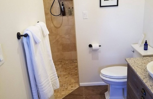 We provide luxurious down and 100% cotton bedding, soft and fluffy towels, organic tea and coffee. The large travertine-lined walk-in shower must be seen to be believed. On our 1-1/2 acre property, we regularly see bobcats, roadrunners, bunnies, owls, and other wildlife. Explore the breathtaking expanse of the night sky with your starfinder program. Your hosts love to socialize, but it's up to you to choose your level of privacy (your suite is fully separate). Connect to X-Finity Comcast high-speed Wifi for your entertainment needs.